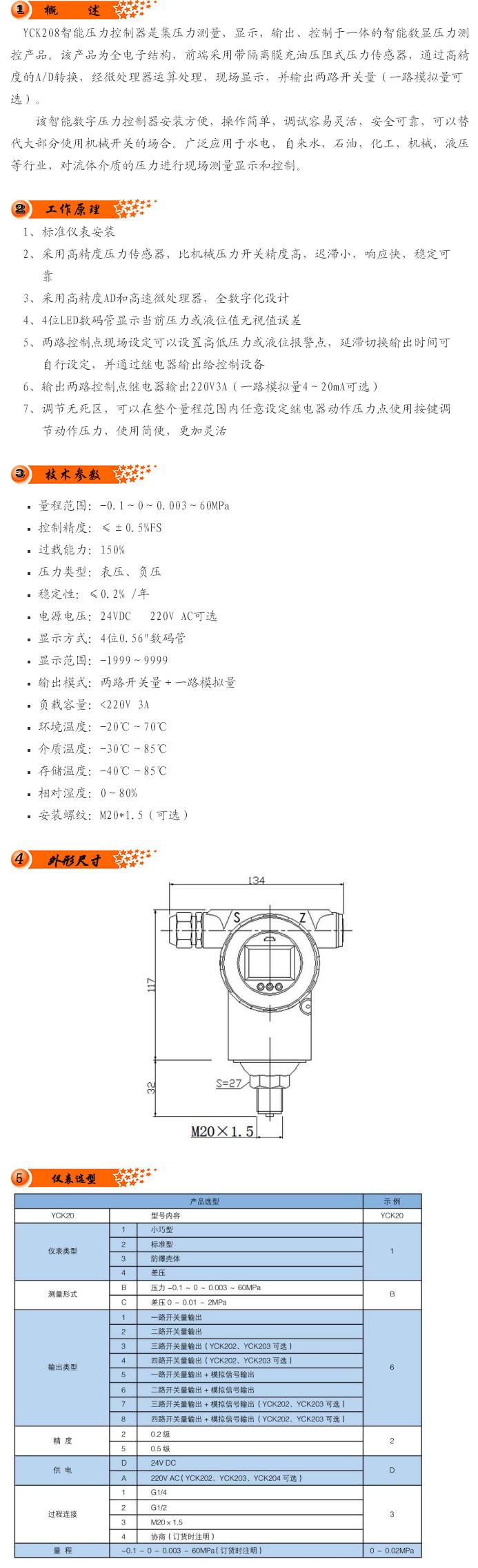 YCK208,壓力控制器