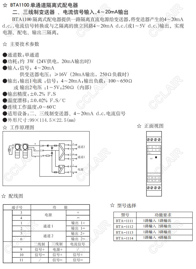 BTA1111,BTA1112,BTA1113,BTA1114,BTA1121,BTA1122,BT(KS)A1100,隔離式配電器