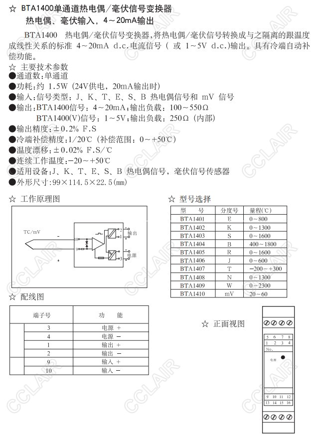 BTA1400,BTA1401,BTA1402,BTA1403,BTA1404,BTA1405,BT(KS)A1400,熱電偶/毫伏信號轉(zhuǎn)換器