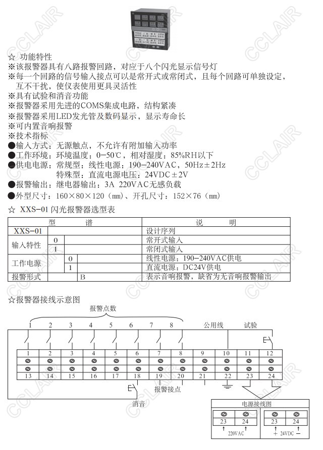 XXS-0100B,XXS-0101B,XXS-0110B,XXS-0111B,XXS-01,八回路閃光報警器
