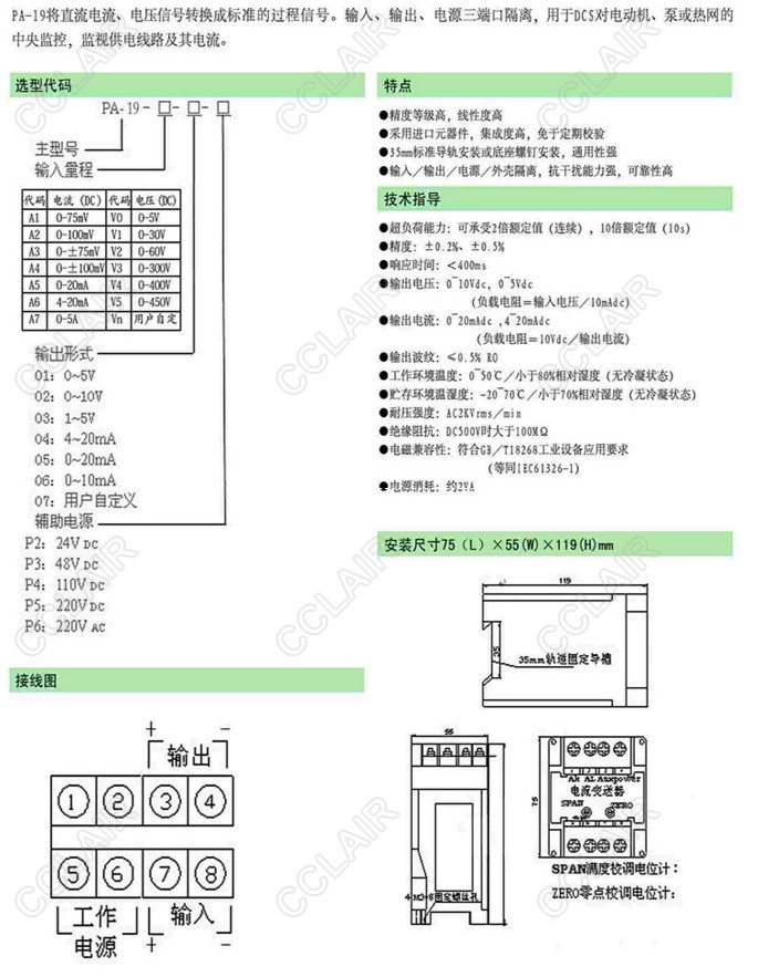 PA-19-A1,PA-19-A2,PA-19-A3,PA-19-A4,PA-19-A5,PA-19-A6,PA-19-A7,PA-19,直流電流、電壓變送器