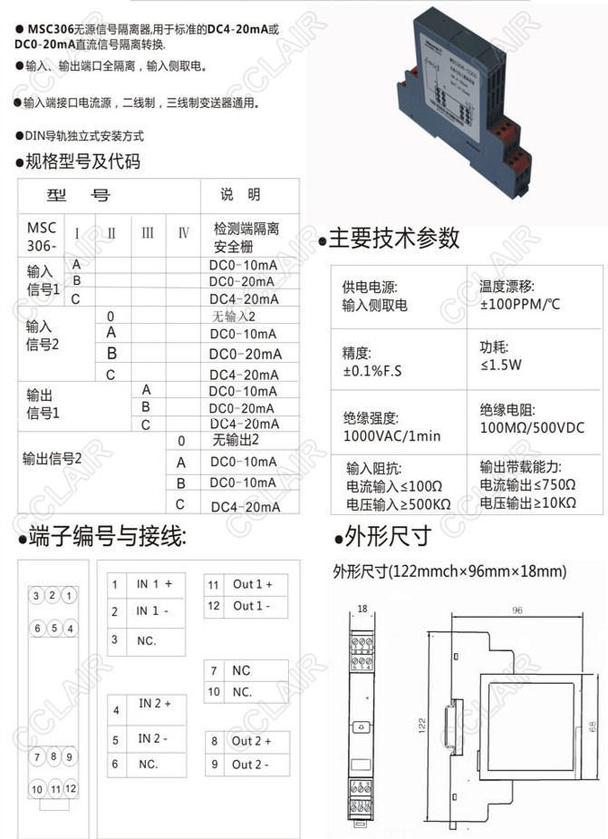 MSC306-A0A0,MSC306-ABBB,MSC306-B0CA,MSC306-CAAB,MSC306-CCBC,MSC306,無源信號隔離器