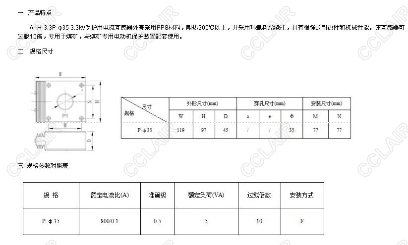 AKH-3.3P-φ35,中壓電動(dòng)機(jī)保護(hù)專用電流互感器