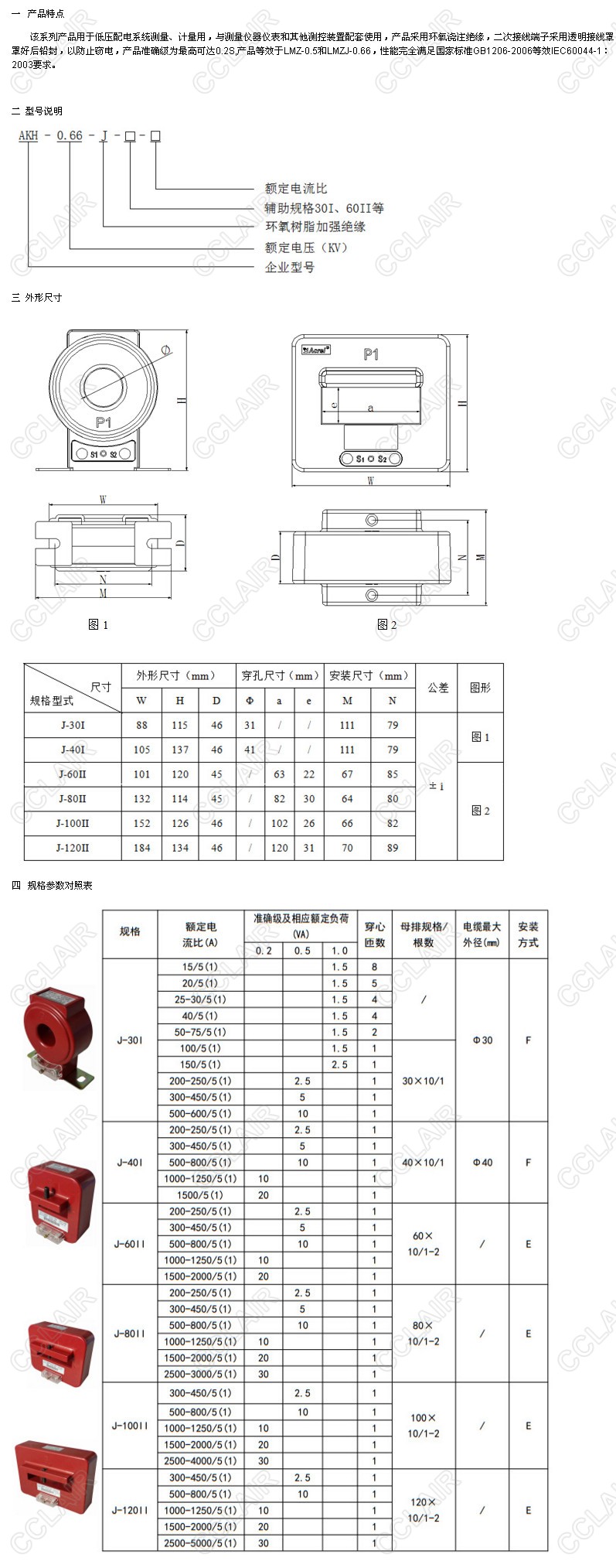 AKH-0.66/J-30I,AKH-0.66/J-60II,AKH-0.66/J-120II,AKH-0.66-J,計(jì)量型電流互感器
