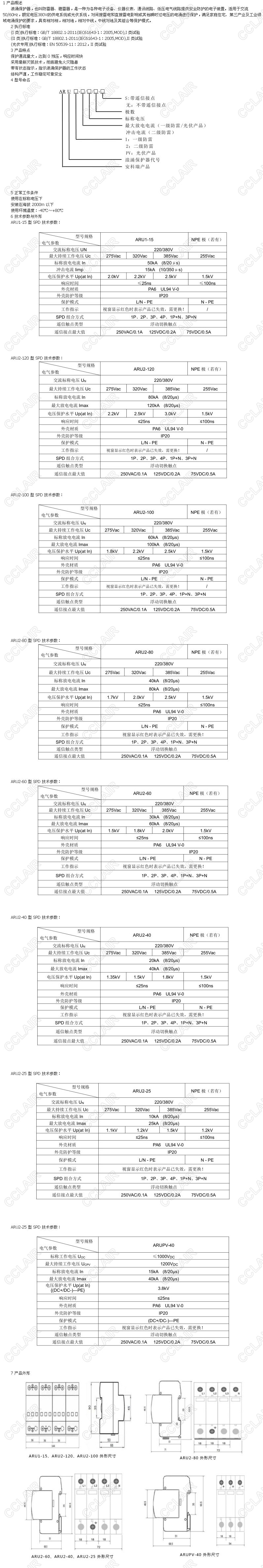 ARU1-15,ARU2-120,ARU2-100,ARU2-80,ARU2-60,ARU2-40,ARU2-25,ARUPV-40,ARU,浪涌保護器