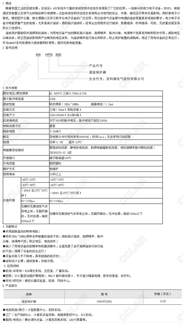 ANHPD300,諧波保護器