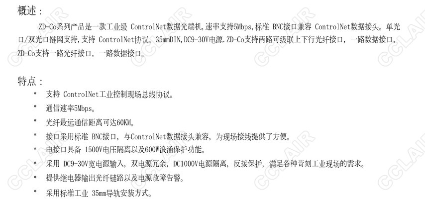 ZD-Co,ControlNet總線數(shù)據(jù)光端機(jī)
