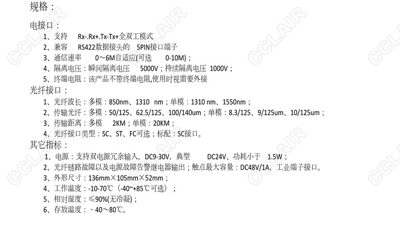 ZD-TY,RS-422總線數(shù)據(jù)光端機