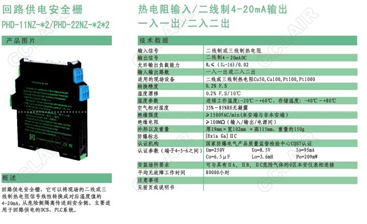 PHD-11NZ-42,PHD-11NZ-52,PHD-11NZ-62,PHD-11NZ-82,PHD-11NZ-92,PHD-22NZ回路供電安全柵