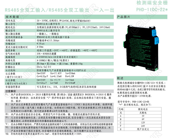 PHD-11DC-22A,PHD-11DC-22B,PHD-11DC-22C,PHD-11DC-22F,PHD-11DC-22H檢測(cè)端安全柵