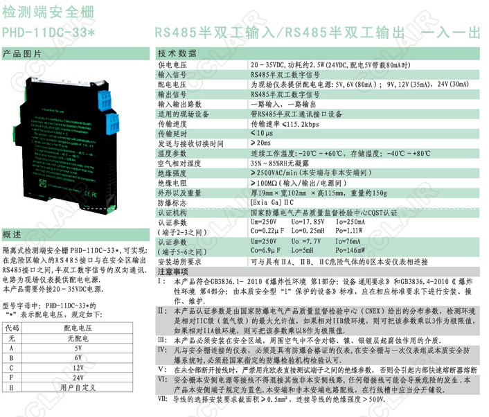 PHD-11DC-33A,PHD-11DC-33B,PHD-11DC-33C,PHD-11DC-33F,PHD-11DC-33H檢測(cè)端安全柵