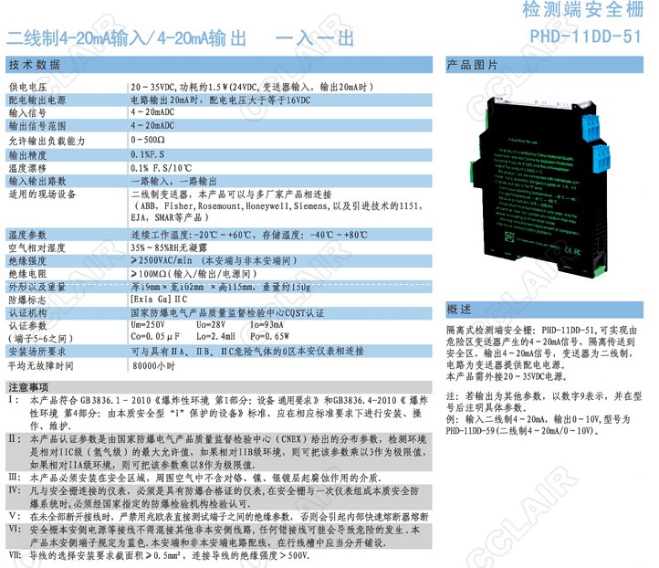 PHD-11DD-51檢測端安全柵
