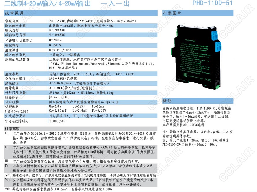 PHD-11DD-21檢測端安全柵