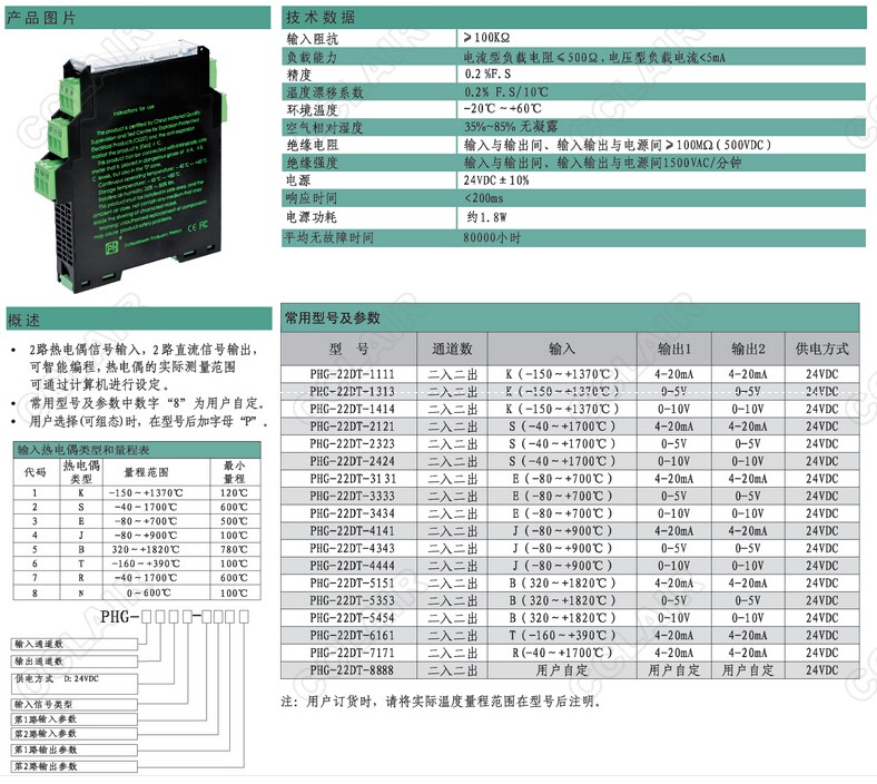 PHG-22DT-5454,PHG-22DT-6161,PHG-22DT-7171,PHG-22DT-8888熱電偶型信號(hào)隔離分配器
