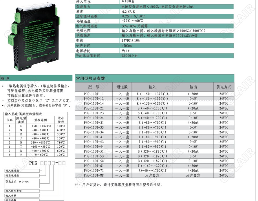 PHG-11DT-54,PHG-11DT-61,PHG-11DT-71,PHG-11DT-88熱電偶型信號