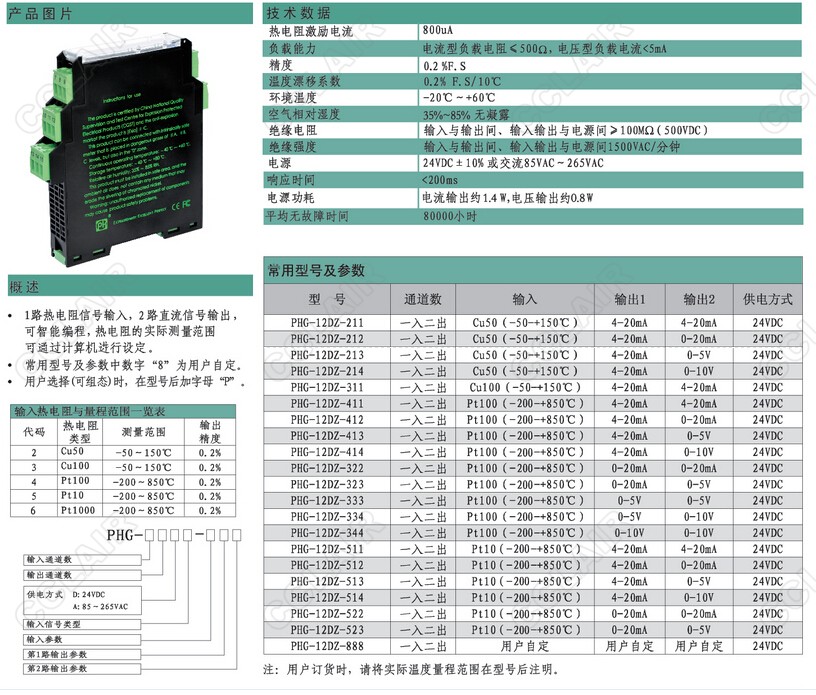 PHG-12DZ-513,PHG-12DZ-514,PHG-12DZ-522,PHG-12DZ-523,PHG-12DZ-888熱電阻型信號(hào)隔離分配器