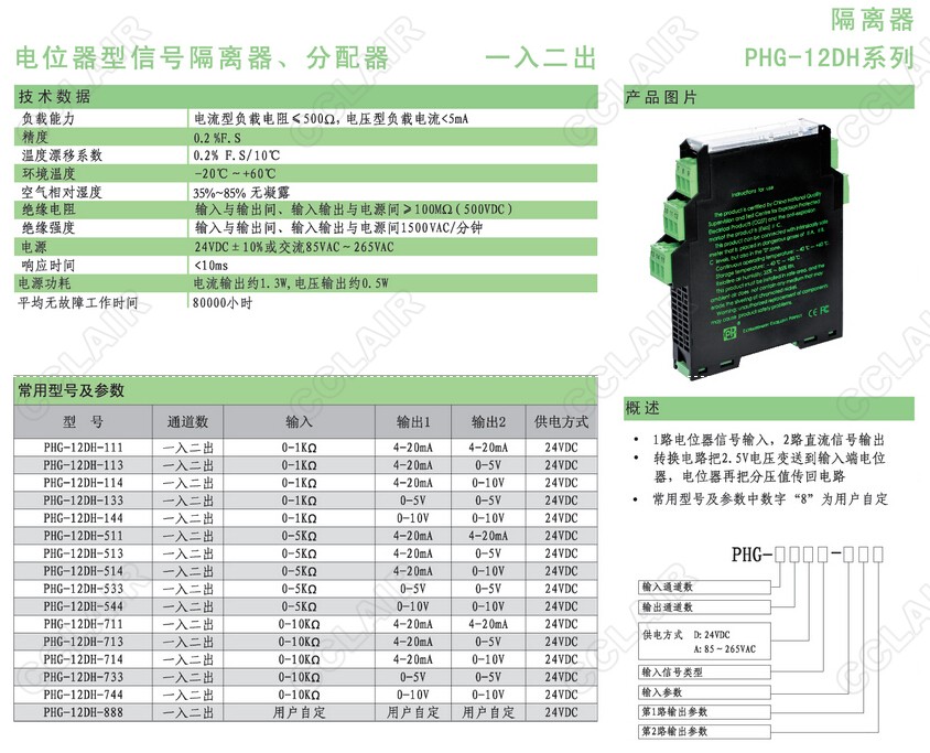 PHG-12DH-111,PHG-12DH-113,PHG-12DH-114,PHG-12DH-133,PHG-12DH-144,PHG-12DH-511,PHG-12DH-513,PHG-12DH-514電位器型信號(hào)隔離分配器