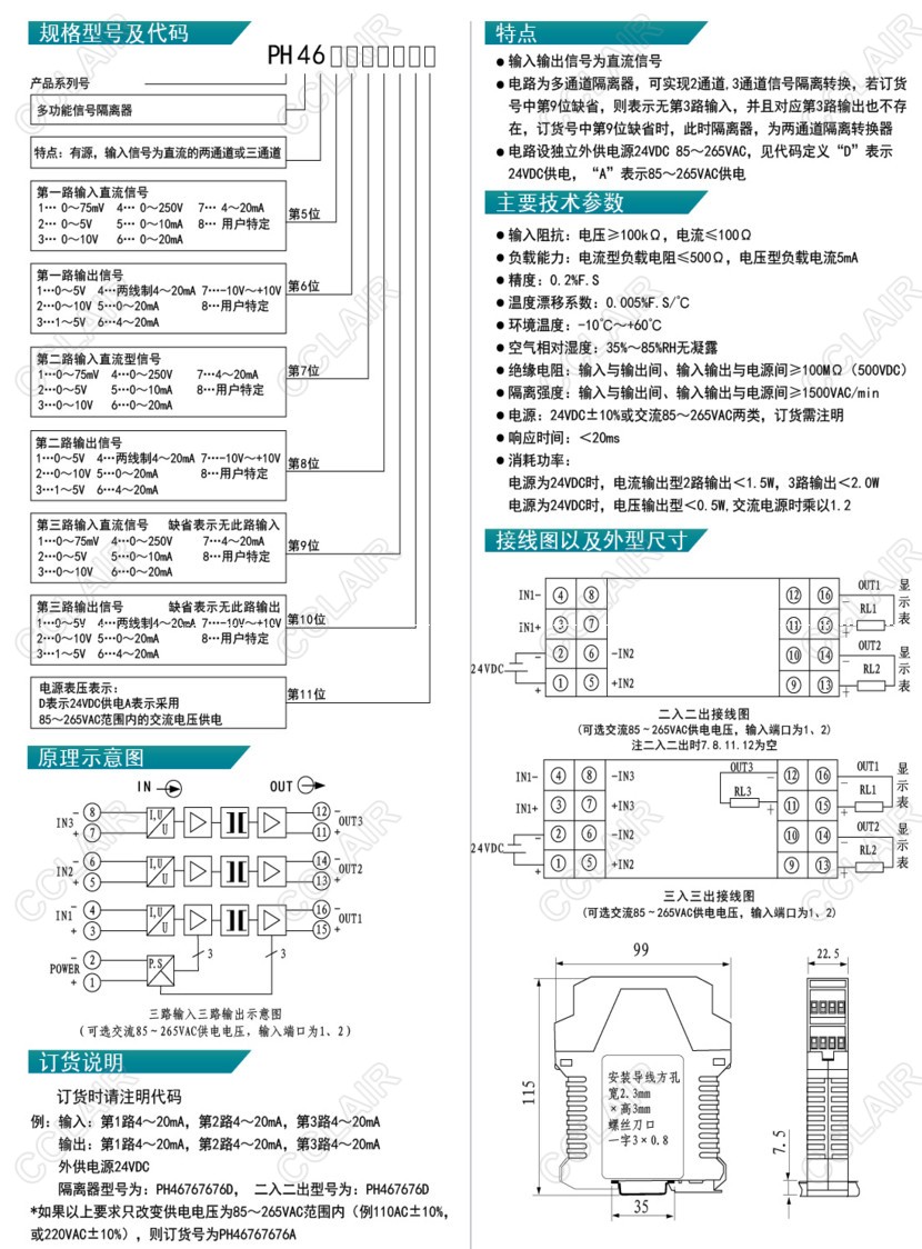 PH46767676A,PH46767676D,PH467676D,PH-46,有源直流型多路信號隔離分配器