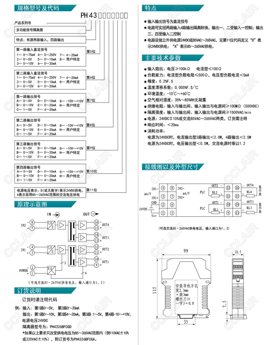 PH4326BFCGA,PH4326BFCGD,PH-43,有源直流型多通道信號(hào)隔離分配器