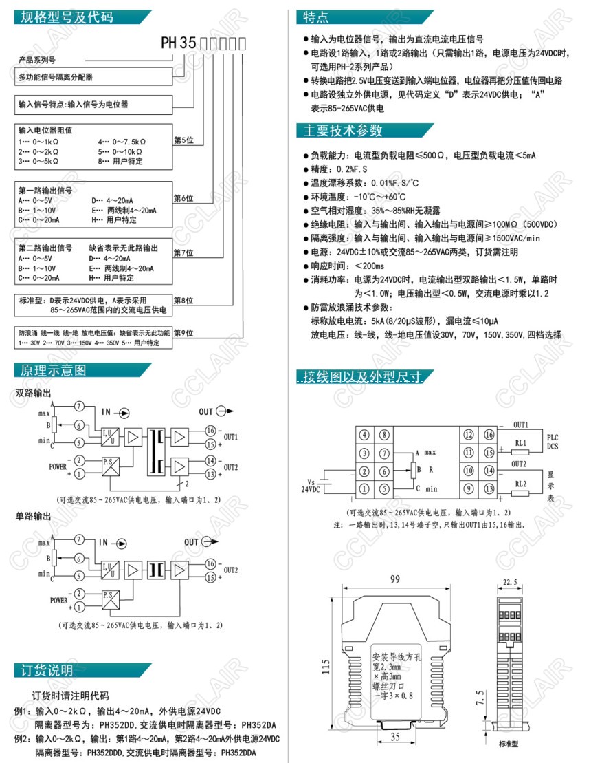 PH-351A,PH-352B,PH-353C,PH-352DD,PH-352DA,PH-352DDD,PH-352DDA,PH-35,電位器型信號隔離器
