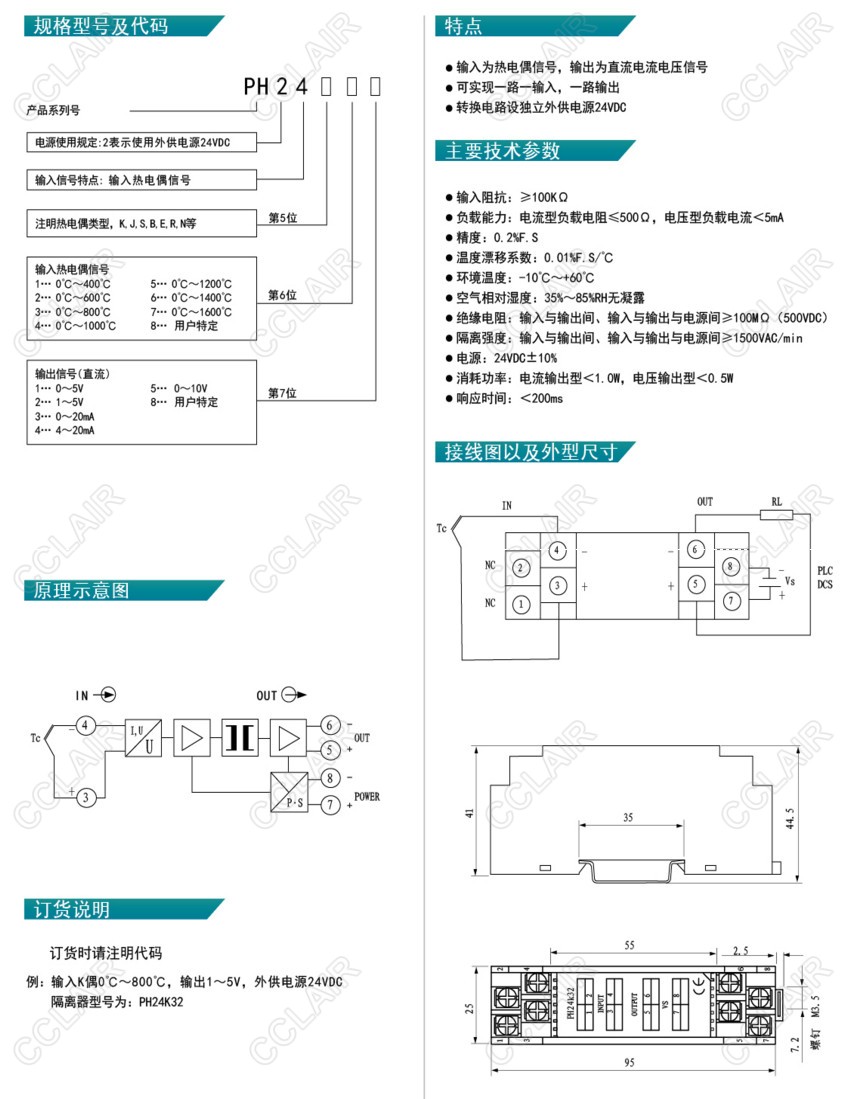 PH24K11,PH24J32,PH24S34,PH24E45,PH24E51,PH24R21,PH24N75,PH-24,熱電偶型信號隔離器