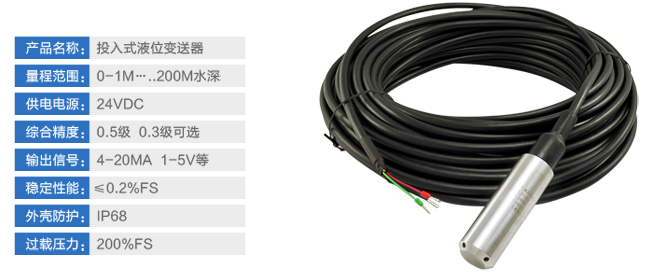 MIK-P260型投入式液位變送器由高性能擴(kuò)散硅壓阻式壓力傳感器作為測(cè)量元件,把與液位深度成正比的液體靜壓力準(zhǔn)確測(cè)量出來(lái),并經(jīng)過(guò)信號(hào)調(diào)理電路轉(zhuǎn)換成標(biāo)準(zhǔn)(電流或電壓)信號(hào)輸出,建立起輸出信號(hào)與液體深度的線性對(duì)應(yīng)關(guān)系,實(shí)現(xiàn)對(duì)液體深度的測(cè)量。產(chǎn)品精度高、體積小,直接投入液體中,即可測(cè)量出變送器末端到液面的液體高度,使用方便。適用于石油、化工、電廠、城市供水、水文勘探領(lǐng)域的液位測(cè)量與控制。經(jīng)過(guò)長(zhǎng)期老化及穩(wěn)定性篩選,產(chǎn)品性能穩(wěn)定可靠,能夠適用應(yīng)用于環(huán)境比較惡劣的露天現(xiàn)場(chǎng),同時(shí)能夠現(xiàn)場(chǎng)液位顯示,零點(diǎn),滿程可遷移。