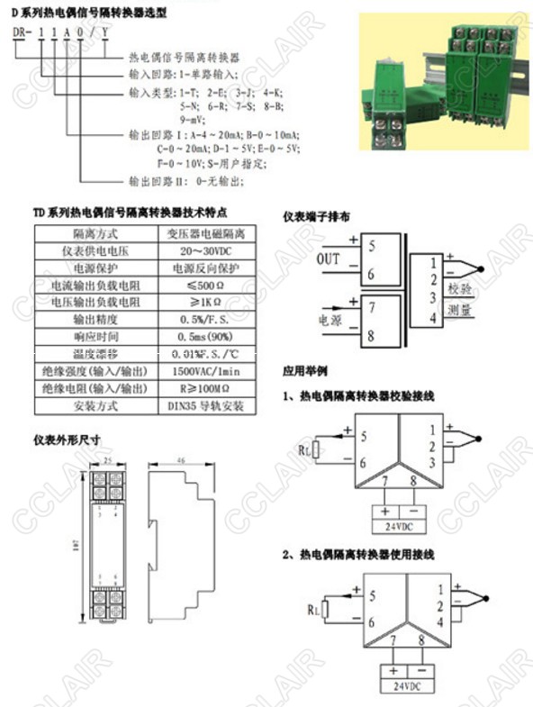 DR-11A0/Y,DR-12B0/Y,DR-14C0/Y,DR-15D0/Y,DR-16E0/Y,DR-19F0/Y,單回路熱電偶信號(hào)隔離器