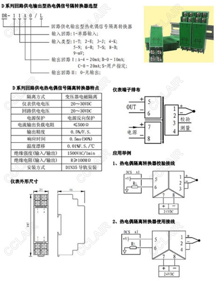 DR-11A0/L,DR-12B0/L,DR-13B0/L,DR-15C0/L,DR-18C0/L,回路供電輸出型熱電偶信號(hào)隔離轉(zhuǎn)換器