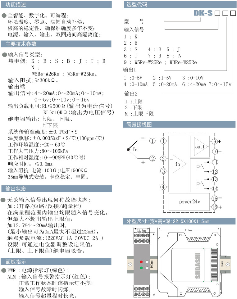 DK-S112,DK-S221,DK-S521,DK-S631,DK-S771,DK-S852,DK-S972,DK-S,熱電偶輸入越限報(bào)警器