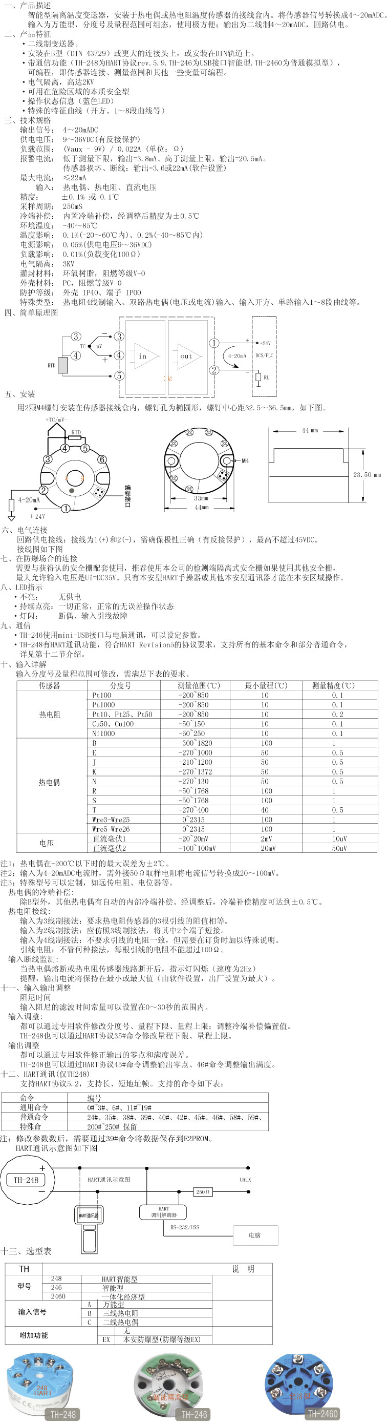 TH-248A,TH-248B,TH-248C,TH-246A,TH-246B,TH-246C,TH-2460A,TH-2460B,TH-2460C,TH-24,溫度變送模塊 |