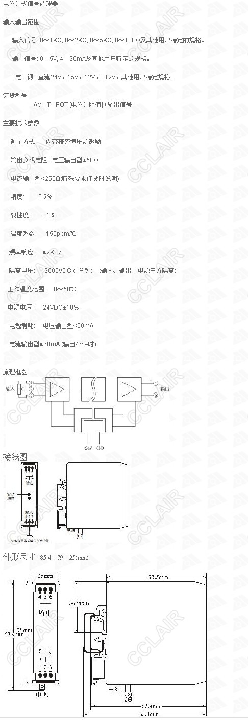 AM-T-POT/U5,AM-T-POT/I4,電位計式信號調(diào)理器