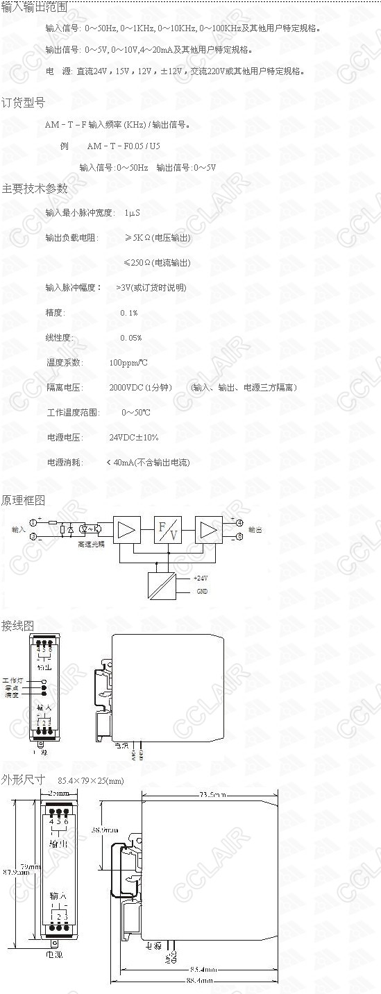 AM-T-F0.05/U5,AM-T-F0.05/I4,AM-T-F1/U10,頻率電壓,電流隔離轉(zhuǎn)換器