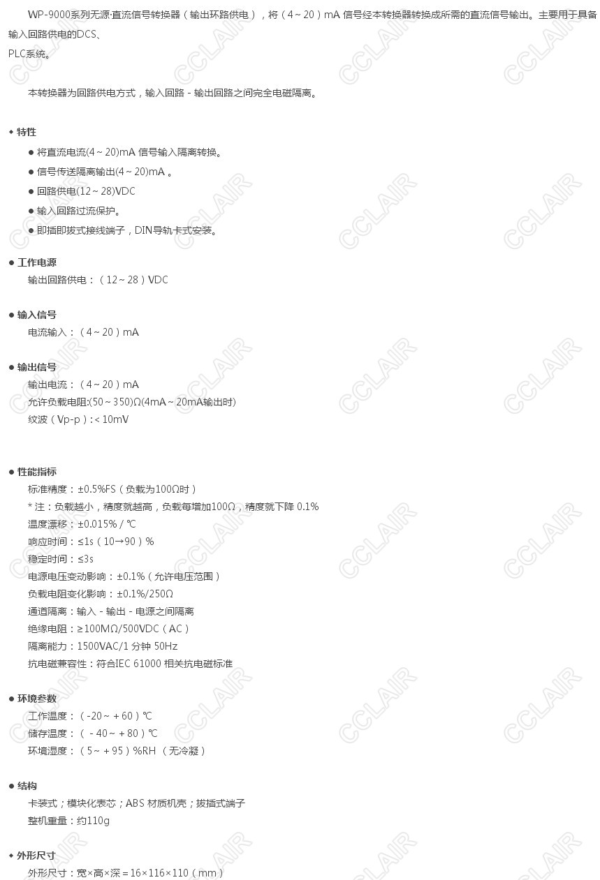 WP-9054,WP-9055,無源直流信號(hào)轉(zhuǎn)換器(輸出環(huán)路供電)