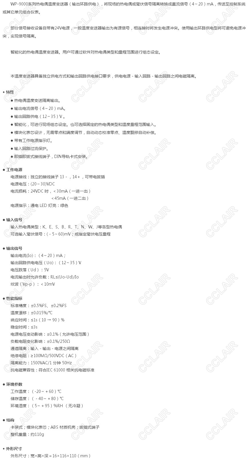 WP-9074,WP-9075,熱電偶溫度變送器(輸出環(huán)路供電)