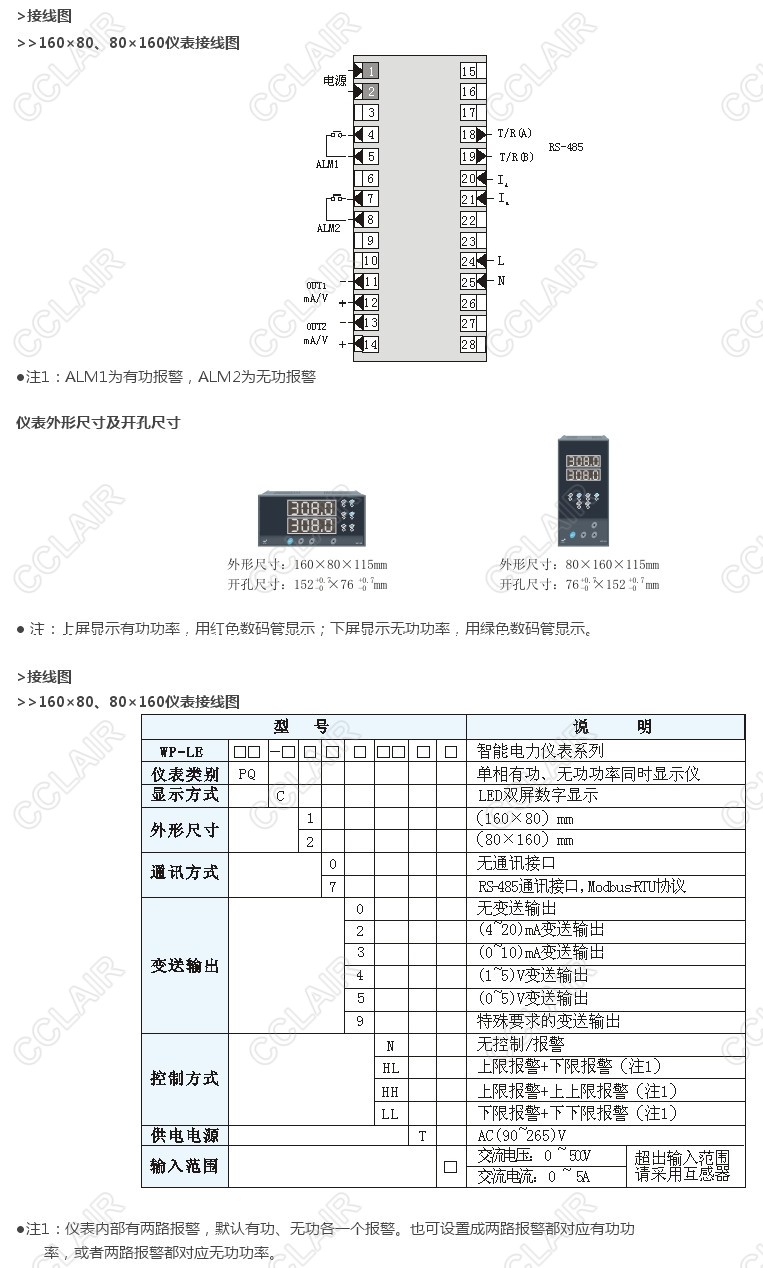 WP-LEPQ-C1,WP-LEPQ-C2,智能單相交流有功,無功功率雙路儀表