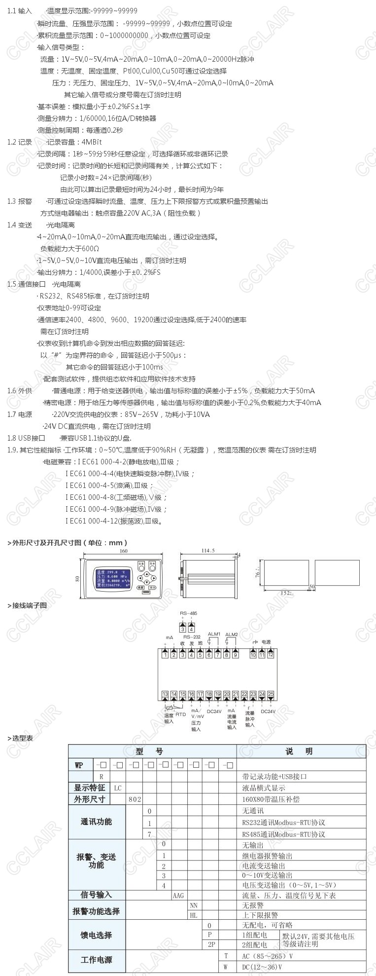 型號: WP-L802-02-FAG-HL-T,WP-LS802-71-AAG-HL-W,智能流量積算控制儀(帶記錄)