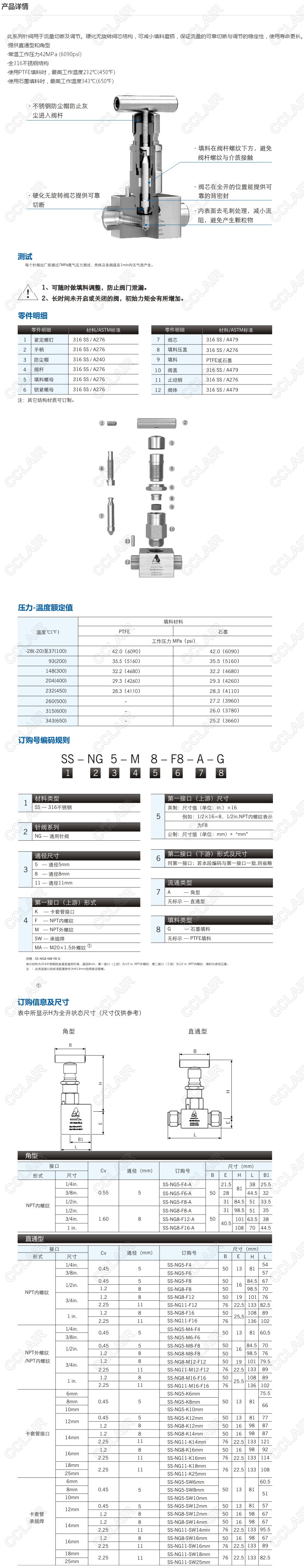 SS-NG8-MA-G,SS-NG8-SW14mm-G,SS-NG通用針閥—不銹鋼管閥件
