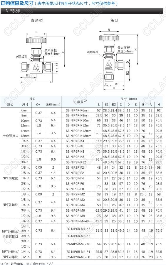SS-NIP2R-M4-K6-A-SH-P,SS-NI3V-F4-K6-A-SH-P,NIP和NI帽式針閥—不銹鋼管閥件