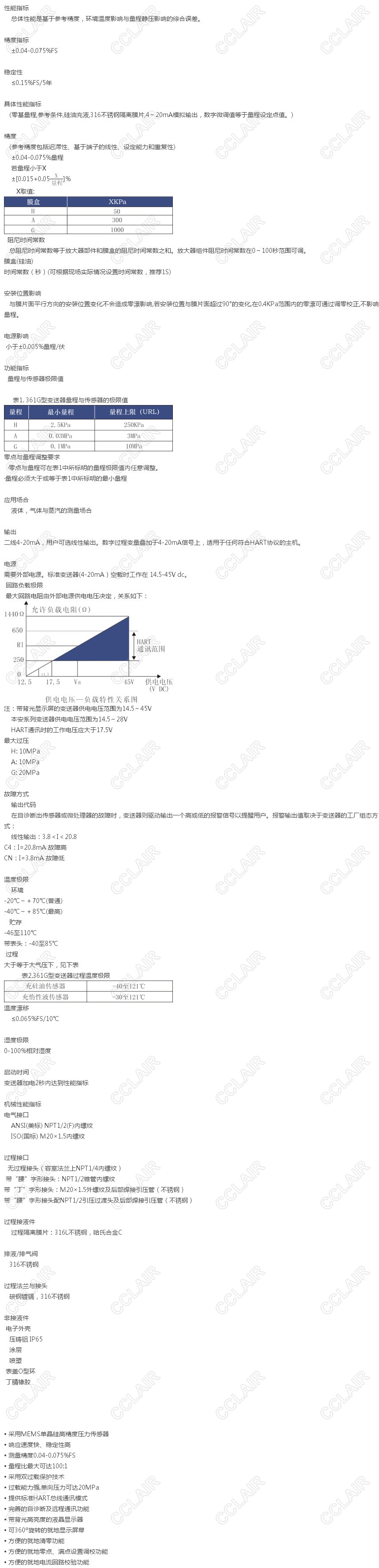 361G單晶硅表壓變送器(精度達0.065%)