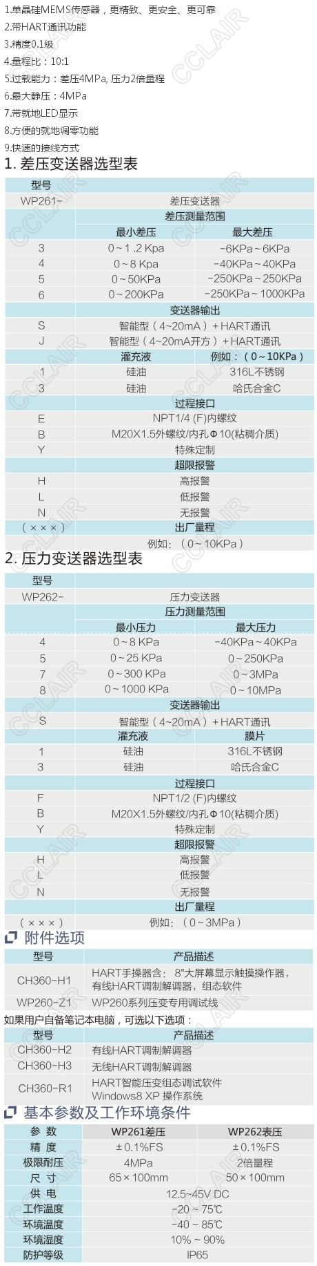 WP260,WP261,WP261小型智能壓力/差壓變送器