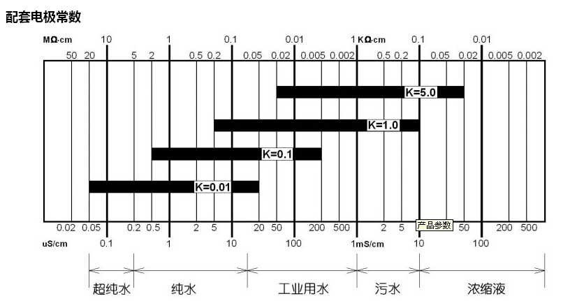 顯示單位:us/cm,ms/cm,PPm 測量范圍:0.01 電極:0.02~20.00 uS/cm-1