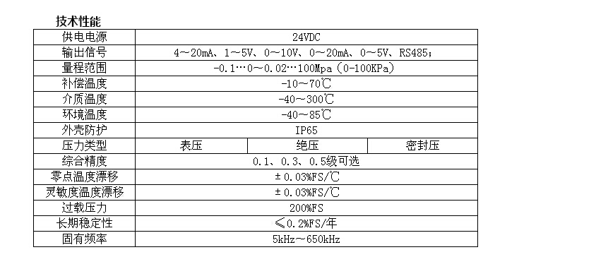 輸出:4~20mA(1-5v、0-5v、0-10v可選);