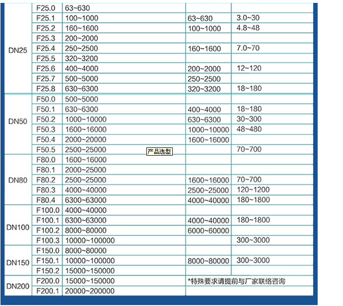 測量范圍:(100%點值)從流量表選擇