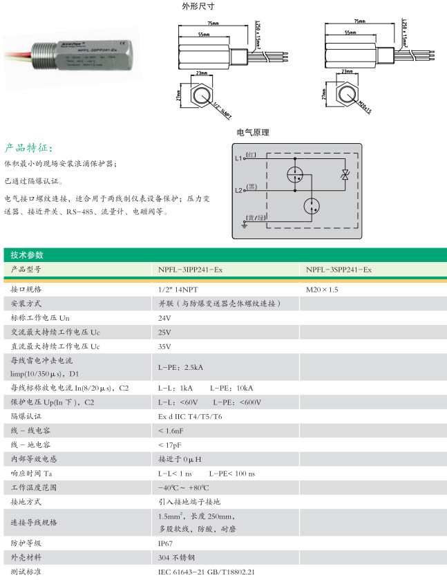 NPFL-3SPP241-Ex,NPFL-3IPP241-Ex,現(xiàn)場安裝型浪涌保護(hù)器(串聯(lián))