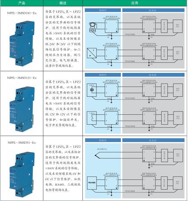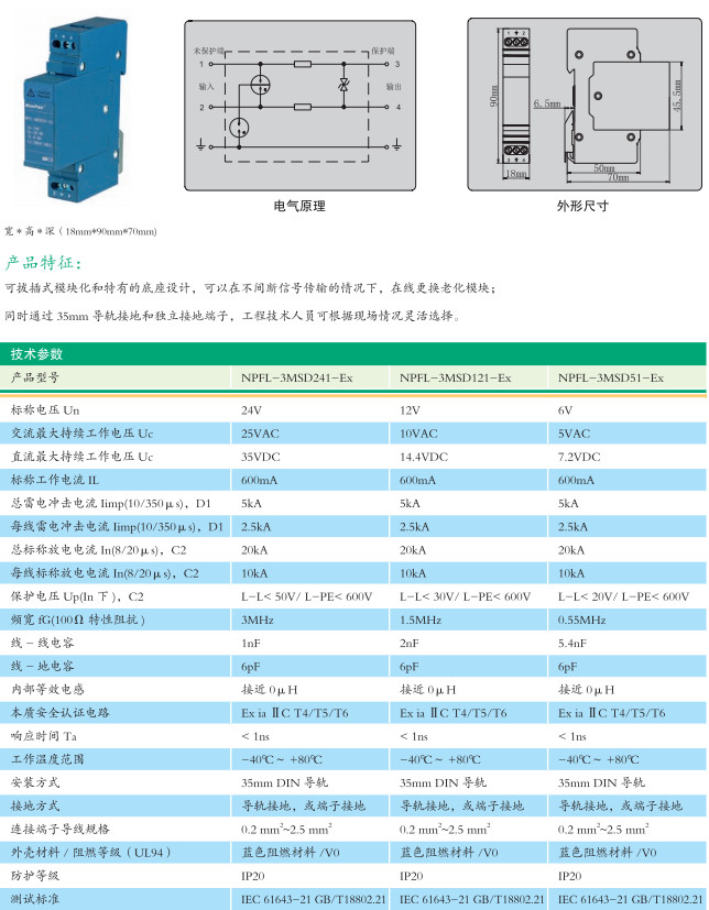 PFL-3MSD51-Ex,NPFL-3MSD121-Ex,NPFL-3MSD241-EX,二線制本安型信號(hào)浪涌保護(hù)器(浮地)