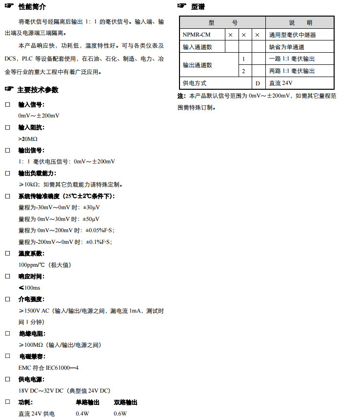 NPMR-CM1D,NPMR-CM2D,通用型毫伏中繼器