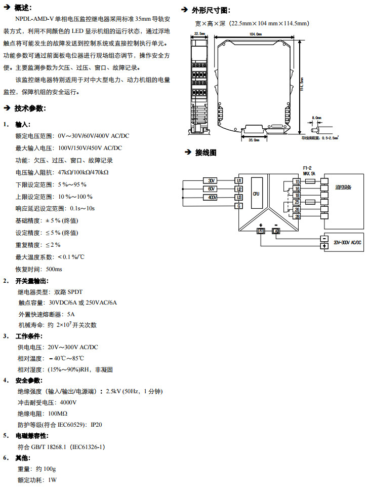 NPDL-AMD-V-400,單相電壓監(jiān)控繼電器