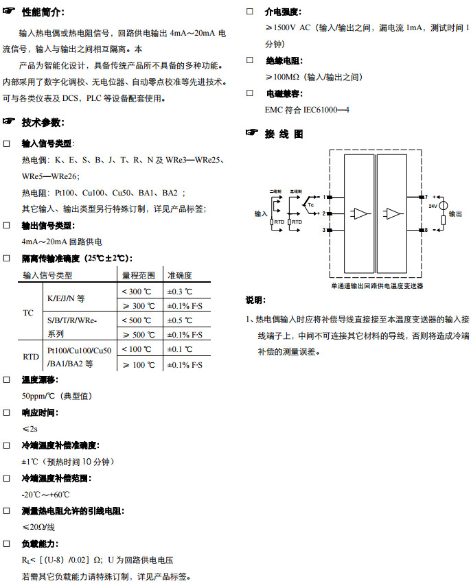 NPWD-C1L,輸出回路供電溫度變送器