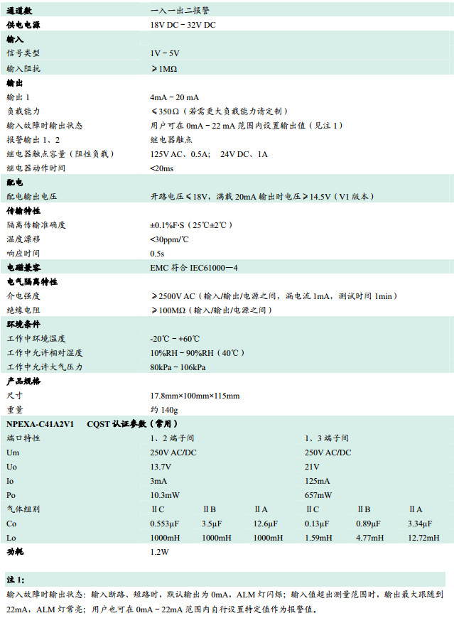 NPEXA-C41A2,檢測(cè)端隔離式安全柵