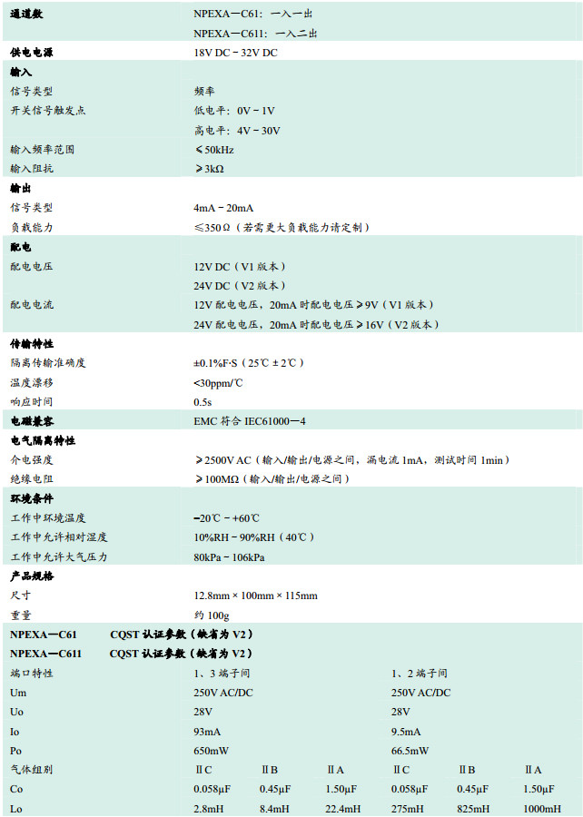 NPEXA-C61,NPEXA-C611,檢測(cè)端隔離式安全柵